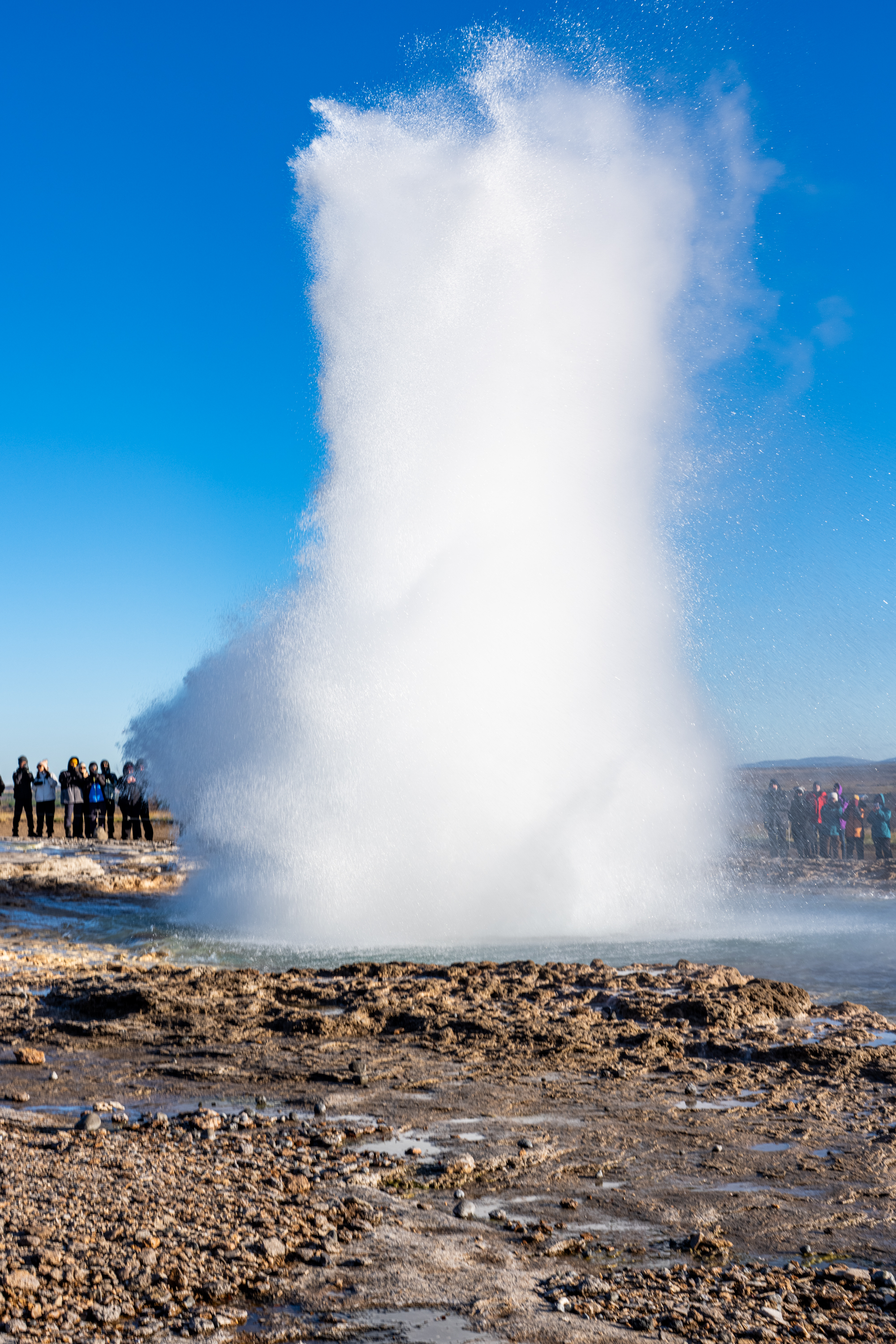 게이시르는 골든서클 코스중에 하나인 간헐천입니다. 이름 그대로 간헐적으로 활동을 하기 때문에 모두가 보고 싶은 하늘 높게 물을 뿜어내는 장면은 하염없이 기다려야 합니다. 제가 있었던 짧았던 시간으로 말해보자면 , 보통 10분 정도 기다리면 한 번은 볼 수 있더라고요.