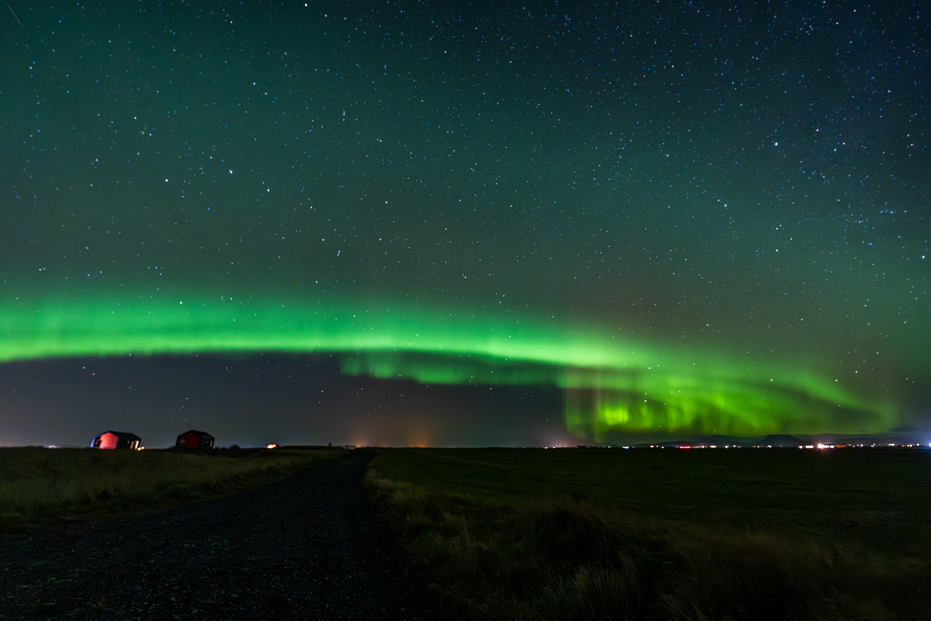 그렇게 숙소에서 딩굴대다가 오로라 보이려나..? 하고 밖에 나가봤는데 오로라가 무지개같이 펼쳐져있었습니다!