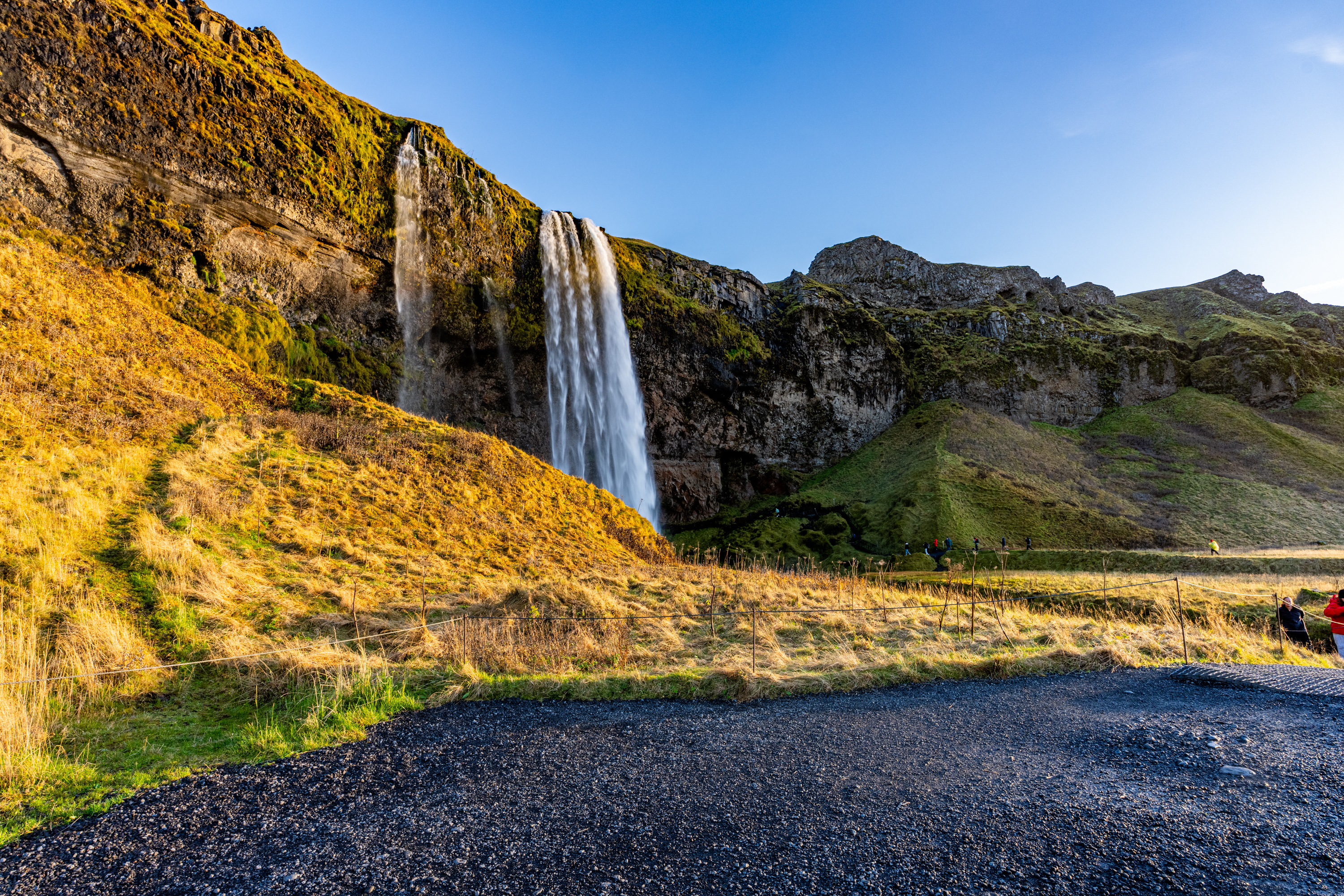 셀야란드스포스(Seljalandsfoss) 에 도착할 수 있습니다. 주차장에서 저 멀리 보이는 폭포가 벌써부터 웅장 하네요.