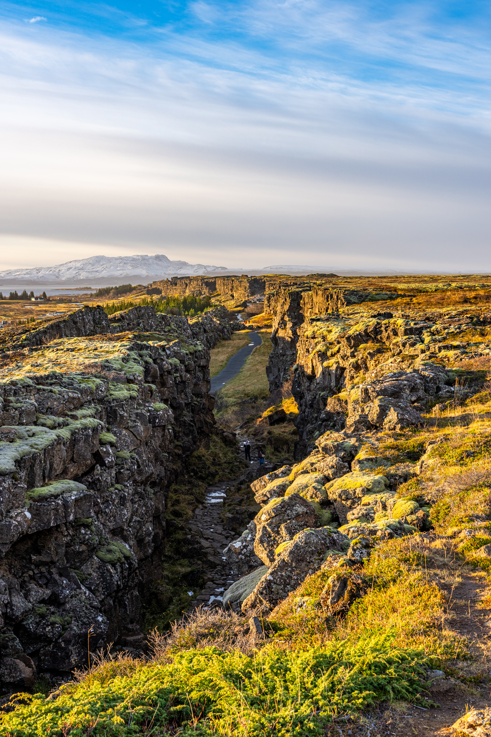 이곳은 지질할적으로 의미가 있는 곳이라고 하는데 , 북아메리카판과 유라시아판이 과거에는 맞닿아 있었지만 , 구조활동이 활발하기 때문에 점점 벌어지고 있다고 합니다. 실제로 아이슬란드 국토도 아주 미세하게지만 점점 넓어지고 있다고 하네요. 그 경계를 잘 보여주는 곳이 이곳 , 싱벨리르 국립공원이라고 합니다.